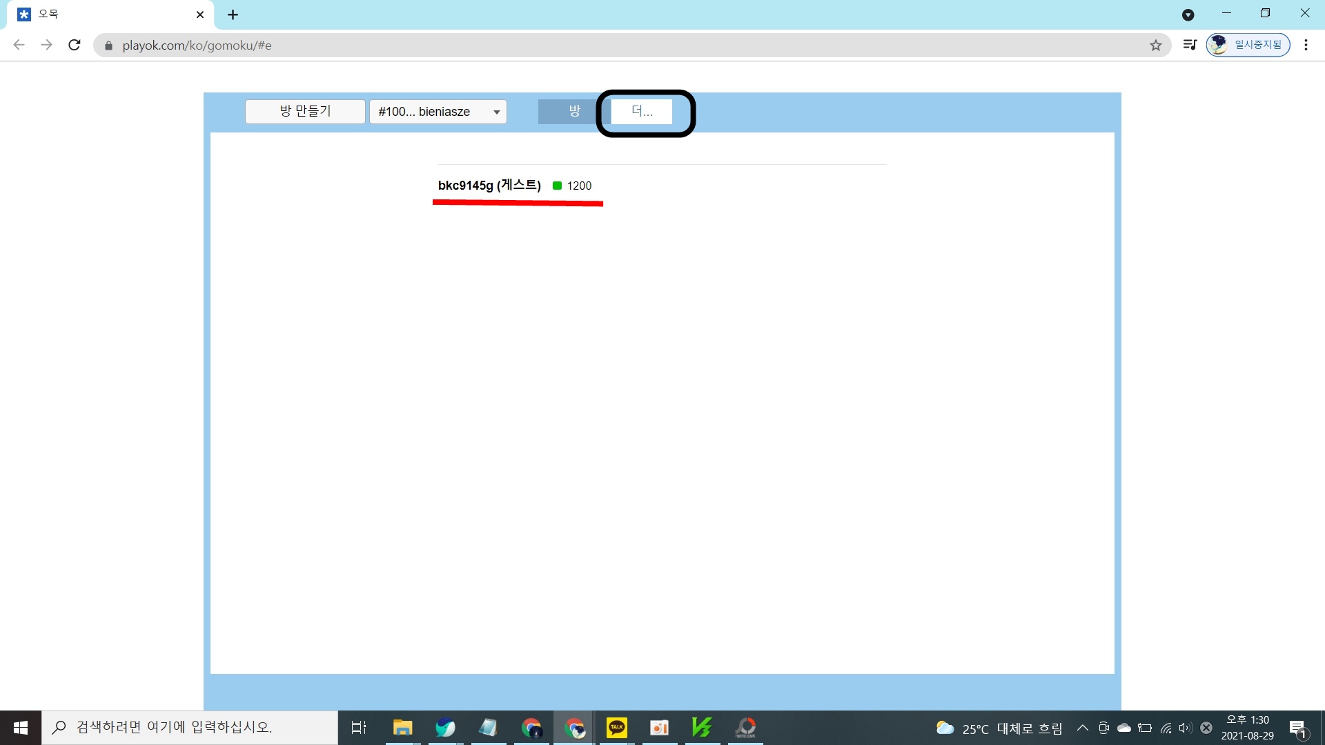 [방에 있....] 이 부분을 누르면 방에 있는 자신의 번호가 표시가 되고
