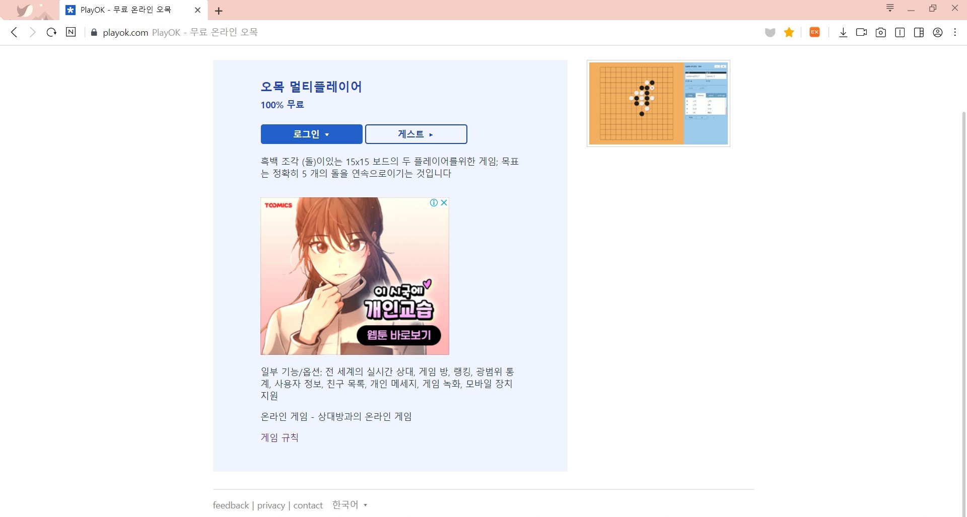 체스 만큼의 깔끔함은 아니지만 있을 건 있는! 오목 사이트예요~